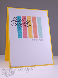 ReplyDeleteI love this!! The subtle patterns - the use of the scripty "hello" with the basic "friend" - bright colors - fantastic look! Thanks for joining us at CAS(E) this Sketch!