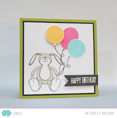 I have used Some Bunny which is paper pieced, a really fun and easy technique to do with the bunny and paired him with the previously released but recently back in stock Balloon Bash clear stamp set. The sentiment is from Simply Said Birthday.