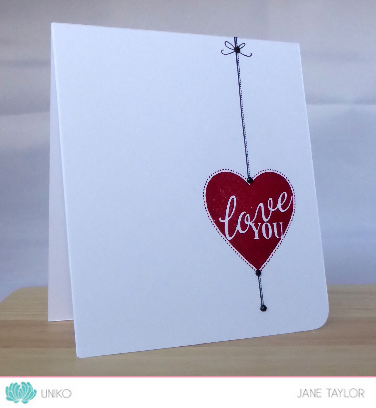 On my card I have combined the large LOVE from All Occasion Sentiments #5 with the I and You partially stamped from a sentiment in the soon to be released Uniko Simply Said clear stamp set. The trio of hearts are from a combination of the soon to be released Uniko I LOVE Tea, Flower Power #3 and tomorrows product introduction.