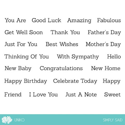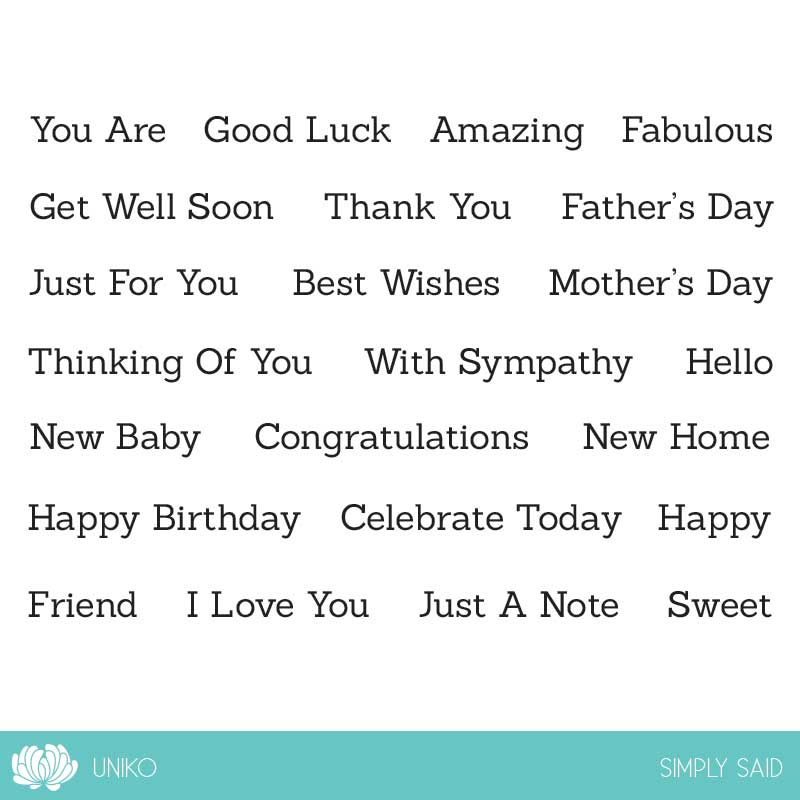 This sentiment set is a great addition and staple to any crafter/stampers arsenal. It features a total of 23 sentiments which are suitable for an array of occasions. They are the perfect size to coordinate with an abundance of previously released Uniko sentiments.