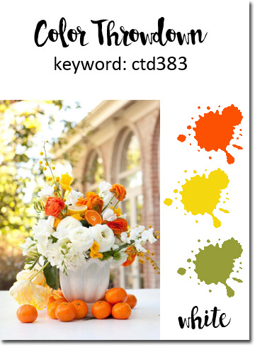 I went for another quick CAS card using a few favourite challenges, first up the layout of my card is inspired by the Freshly Made Sketches sketch seen HERE and below. The colours of my card are from the new Color Throwdown challenge colours seen HERE and below. Lastly I thought I would join in on the TIME OUT Challenge HERE which is Spring or Easter themed cards.