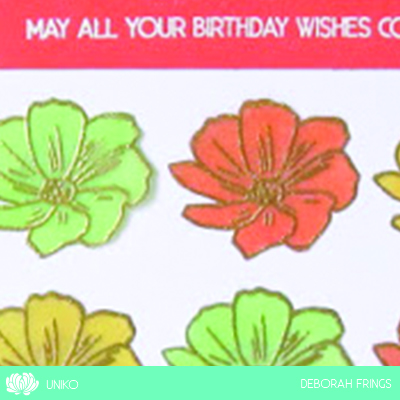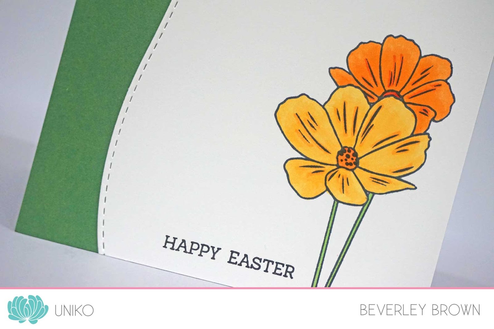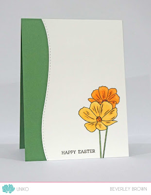 The flowers are stamped in Memento Tuxedo Black ink and coloured really simply with Copic markers. The sentiment is from Some Bunny and the edge of the white layer is die cut using Mama Elephant dies.