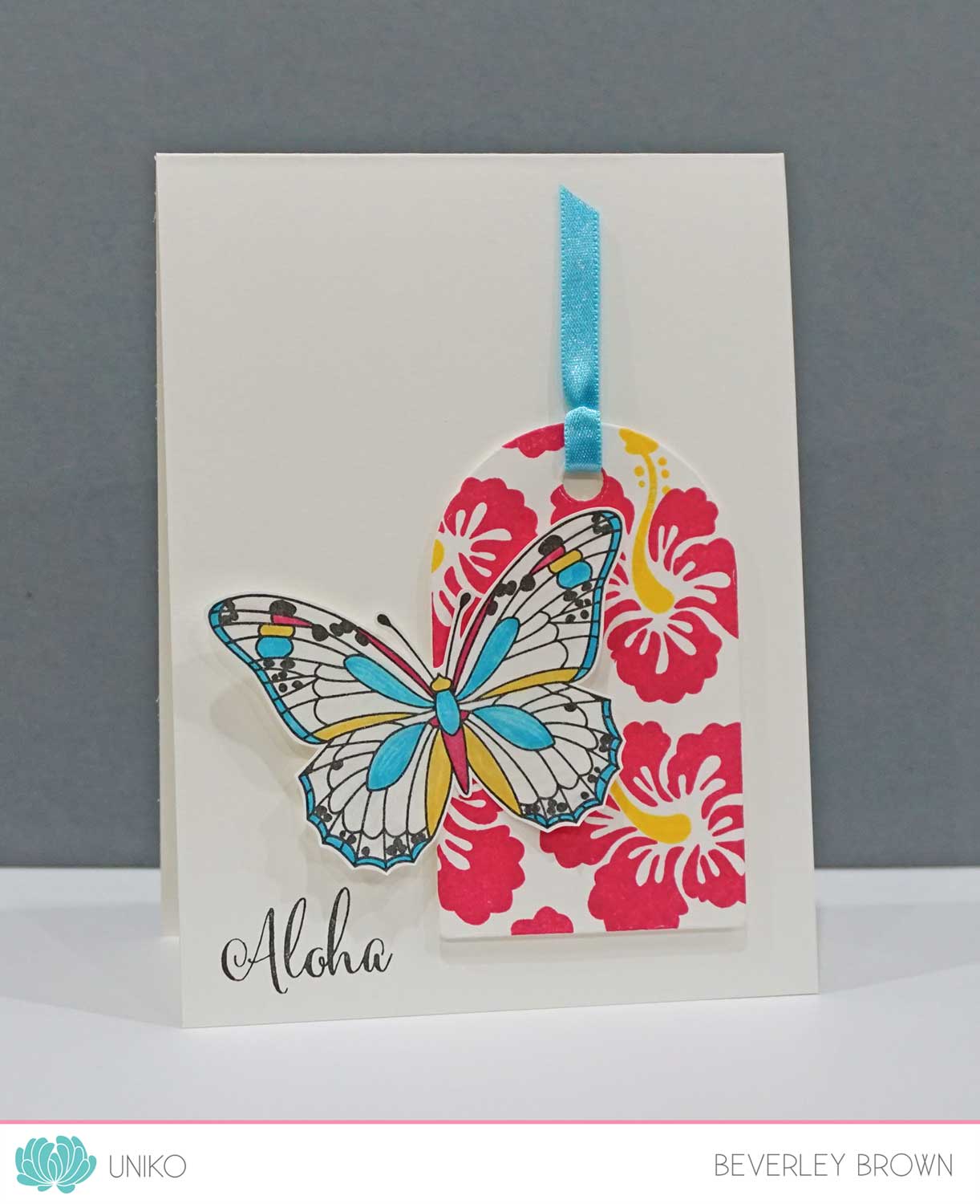 Another quick and CAS card, the tag is stamped with the solid hibiscus flower and stem using SU! Summer Sun and Melon Mambo. The butterfly is stamped in VersaFine Onyx Black and selectively coloured using my SU! Markers. I added a good covering of Wink Of Stella to the butterfly too ;)