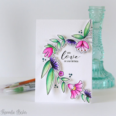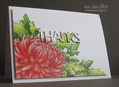 I wanted to make sure the embossed background wasn't obscured too much, so I chose to use the flowers from Beautiful Blooms III and a sentiment from Simply Said Blocks.