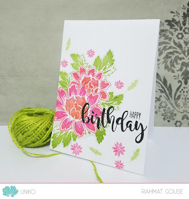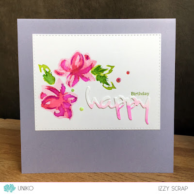 This was one of the cards we made at last weekends Uniko Stamping Retreat and I wanted to show how the detail stamps can be used on their own and not just as shading inside the outline foliage stamps.