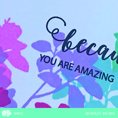 I used the tiny trio of accent stamps to create my own patterned paper design. I added some White Blizzard Glitter Nuvo drops to the flower centres for a little sparkle embellishment and the bold 'hello' is stamped, fussy cut & adhered to the card using foam adhesive.