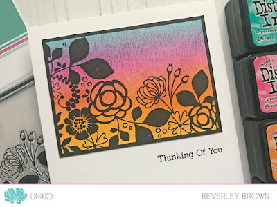 I love how striking the design is against colourful backgrounds. For this card I went back to my original Mini Distress Inks in my favourite colours, Mustard Seed, Spiced Marmalade, Picked Raspberry & Peacock Feathers to create a ink blended background. I've then simply stamped the image, fussy cut it and adhered it to my card base. The sentiment is from Simply Said.